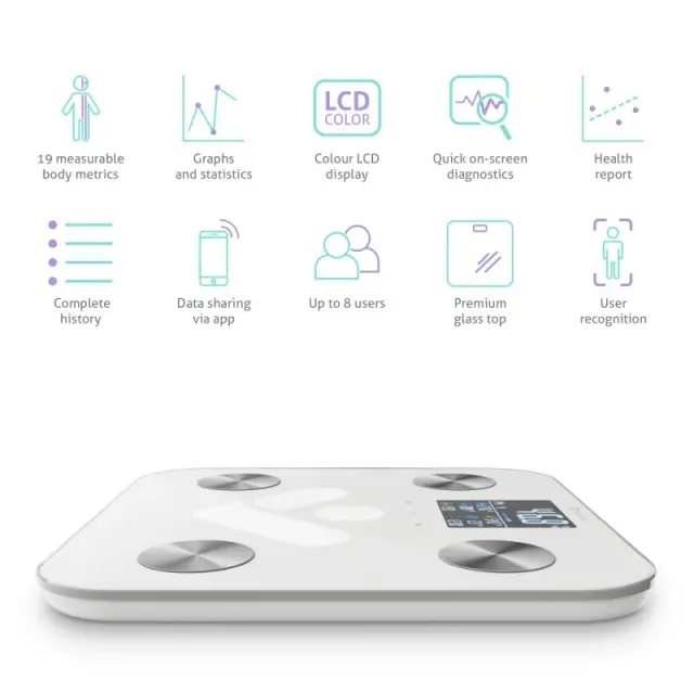 Spoznajte svoje telo do potankosti. Poleg mase vam bo aplikacija razkrila 19 različnih telesnih indeksov, na primer razmerje maščobe oziroma vode v telesu.