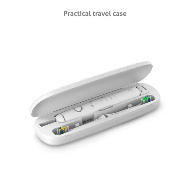SonicBrush Compact gre zahvaljujoč svoji majhnosti v vsako torbico. Prvorazredno zobno higieno si lahko tako privoščite tudi na potovanjih. Polnilno stojalo lahko ostane doma. Baterija v ščetki zdrži do 30 dni čiščenja. Minimalistični dizajn bo poživil vašo kopalnico, ena sama tipka pa zagotavlja enostavno upravljanje.