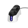 Polnilna postaja za dva uradna PS5 DualSense kontrolerja omogoča hkratno polnjenje in priročno shranjevanje. Zanesljivi priključki poskrbijo za nemoteno polnjenje, LED indikatorji pa prikazujejo stanje baterije. Navpična oblika prihrani prostor in se stilsko ujema s konzolo. Priložen USB-C kabel omogoča preprosto povezavo prek USB-C vhoda na konzoli. *Za delovanje mora biti konzola vključena ali v načinu spanja.