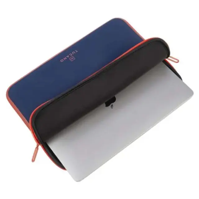Ta modri ovitek Tucano Elements 2 je primeren za različne modele, vključno s 13-palčnim MacBookom Pro 2020 / 2016 in 13-palčnim MacBookom Air 2018 / 2022.. 4 mm struktura iz recikliranega neoprena absorbira blage udarce in obdaja napravo z mehkim oblazinjenjem.. Ravni šivi zagotavljajo natančno prileganje in udobno prenašanje. Sistem proti drsenju preprečuje, da bi računalnik med odpiranjem zdrsnil.
