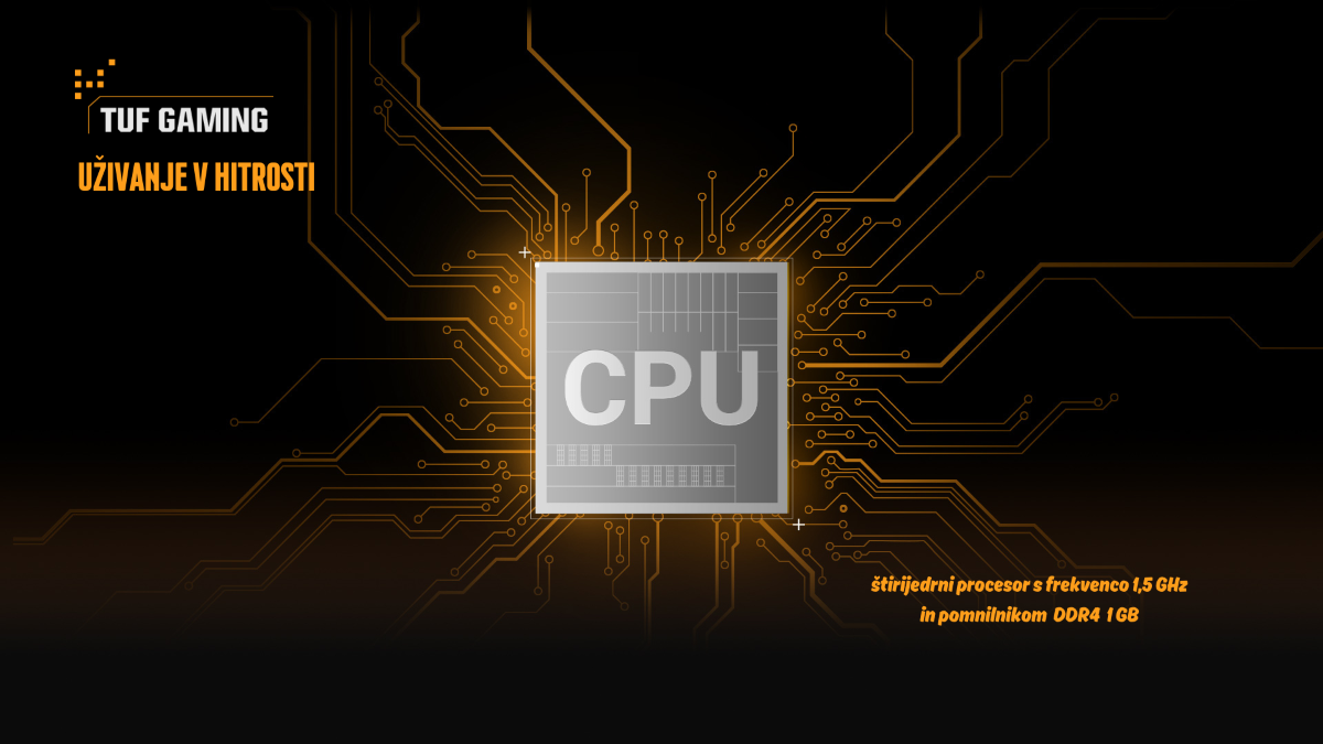 TUF Gaming BE6500 poganja zmogljiv štirijedrni procesor s frekvenco 1,5 GHz in je opremljen z velikim pomnilnikom DDR4 s kapaciteto 1 GB, ki brez težav opravlja različna opravila.