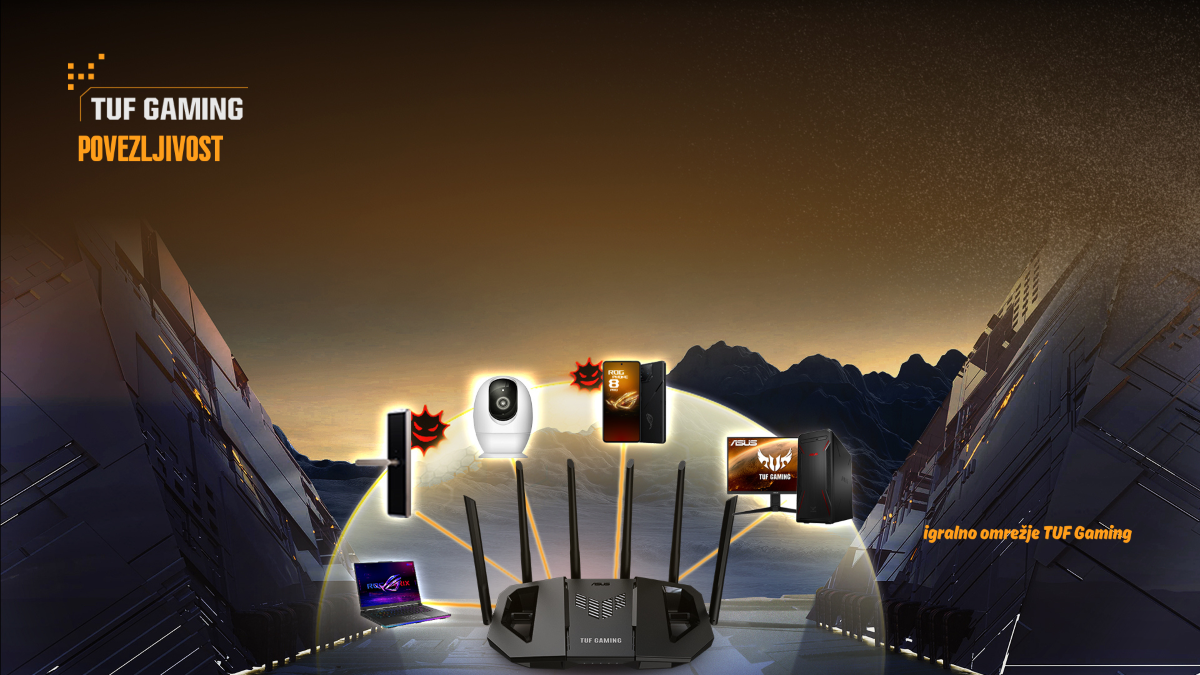 ASUS TUF Gaming BE6500 združuje WiFi 7 in ASUS AiMesh, ter tako ponuja več kot le razširjeno pokritost. Zagotavlja stabilno, varno in funkcionalno bogato omrežje pod enim SSID, hkrati pa sodeluje z združljivimi usmerjevalniki ASUS za enostavno upravljanje, napredno varnost in integracijo pametnega doma v celotnem omrežju.