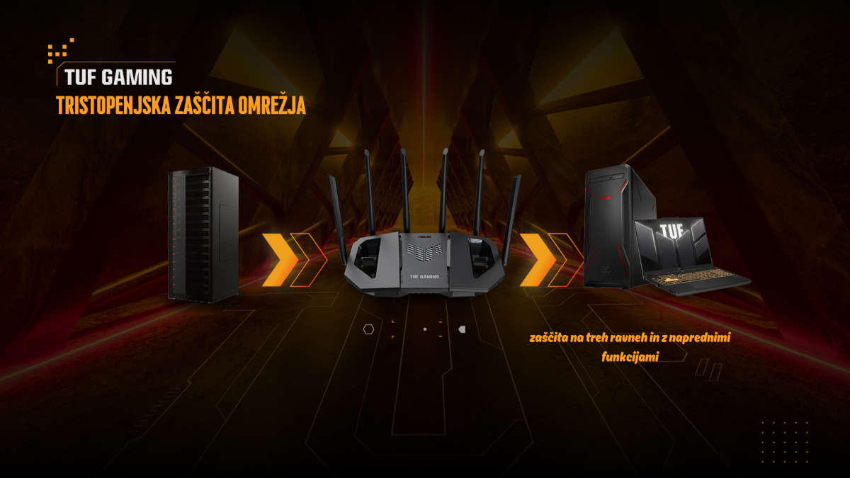 TUF Gaming BE6500 ponuja strategijo zaščite na treh ravneh in z naprednimi funkcijami izboljša celotno omrežje. Ta zmogljiv pristop zagotavlja zanesljivo zaščito pred razvijajočimi se kibernetskimi grožnjami.