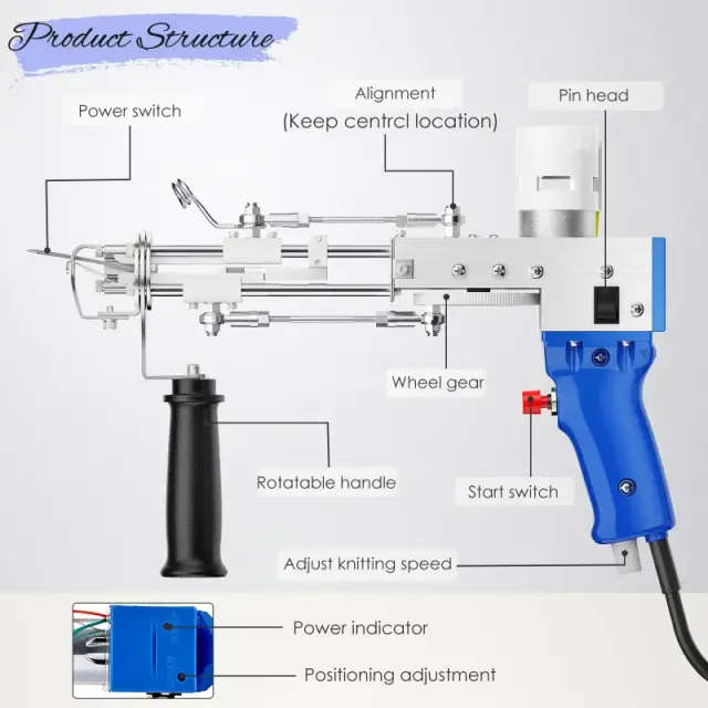 • Tip Tufting pištola: 2 v 1 Tufting pištola