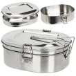 Turistična menza, sestavljena iz treh elementov. Izdelana iz materialov, ki so varni za zdravje in živilsko nevtralni. Popoln za prenašanje obrokov ali prigrizkov. Popoln za pohodništvo, kampiranje, gorske ekspedicije in druga potovanja. Menza ni 100% tesna (nima tesnila), hrano je treba prenašati v navpičnem položaju, da se vsebina ne razlije.