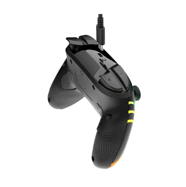 Popestrite svojo igralno izkušnjo z brezžičnim krmilnikom Afterglow Wave Wireless RGB za Nintendo Switch™ 2. Ta krmilnik je združljiv tudi z Nintendo Switch™, Nintendo Switch™ Lite in Nintendo Switch™ – OLED modelom. Z osmimi nastavljivimi RGB-conami in štirimi vnaprej določenimi načini osvetlitve lahko svetlobne učinke prilagodite svojemu slogu ali razpoloženju. Smerni palici z vgrajeno tehnologijo senzorjev TMR (Tunneling Magnetoresistance) omogočata visoko natančnost in vzdržljivost, medtem ko vgrajeni gibalni senzorji povečujejo odzivnost med igranjem. Do funkcij GameChat dostopate hitro z udobno nameščenim gumbom C. Uživajte do 20 ur brezžične igre zahvaljujoč polnilni bateriji. Krmilnik je uradno licenciran s strani Nintendo®, zagotavlja živahen slog, zanesljivo delovanje in udobje za celodnevno igranje. Značilnosti Osem RGB-con s štirimi prednastavljenimi načini za dinamične svetlobne kombinacije TMR-senzorji v smernih palicah za gladko in natančno igranje Gumb C za funkcije GameChat Brezžična povezava z dosegom do 9 m (30 ft) in nizko zakasnitvijo Polnilna baterija za do 20 ur igranja z enim polnjenjem Vgrajeni gibalni senzorji za poglobljeno igralno izkušnjo Dva zadnja gumba z možnostjo programiranja za hitre akcije Protizdrsni oprijemi in palici za boljši nadzor Uradno licenciran izdelek Nintendo® za Nintendo Switch™ 2 Združljivost Nintendo Switch™ 2 Nintendo Switch™ Nintendo Switch™ Lite Nintendo Switch™ – OLED model Tehnične specifikacije Povezava Brezžični doseg do 9 m Masa izdelka (krmilnik) 0,38 kg Dimenzije izdelka (Š x V x G) 160 mm x 135 mm x 65 mm