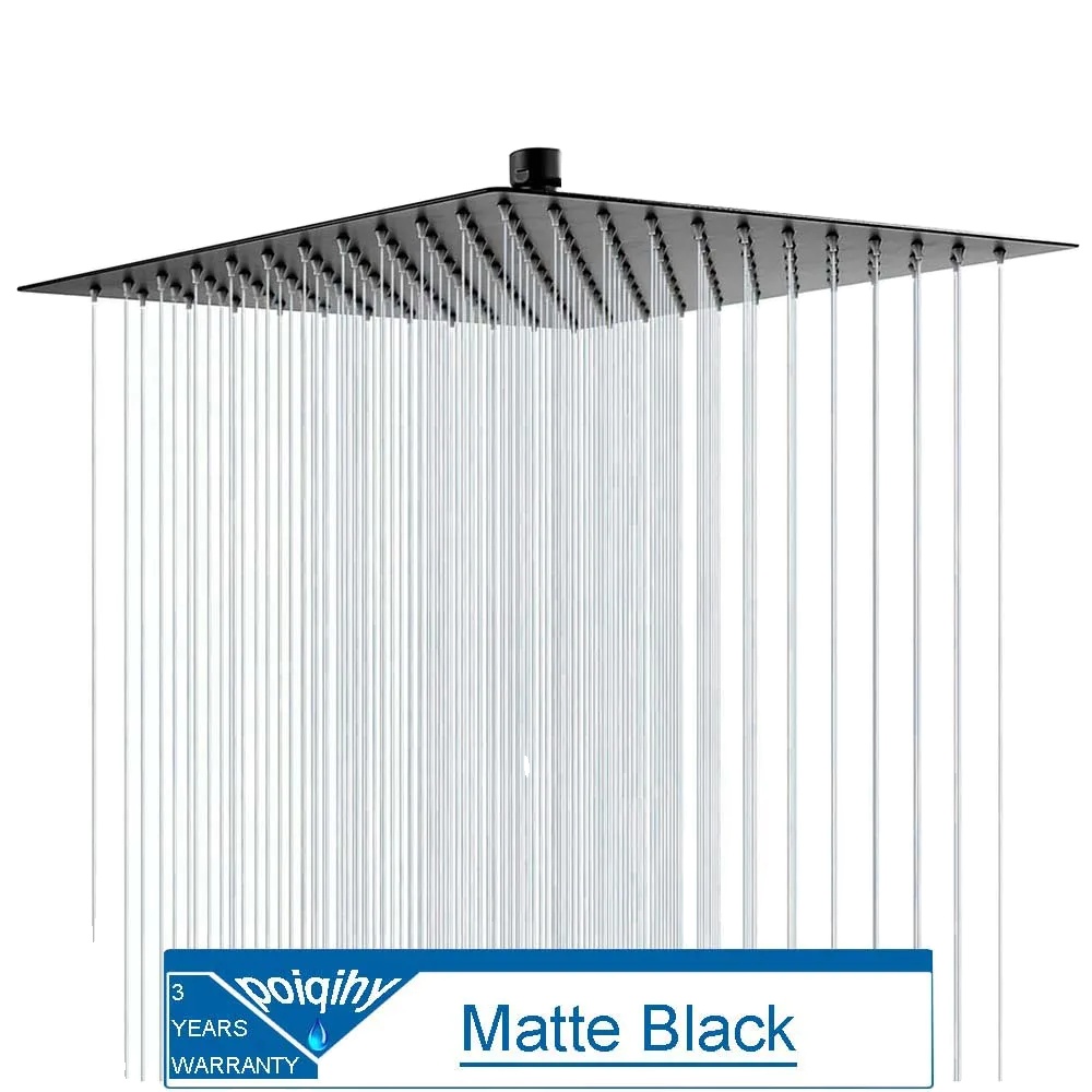 Tuš glavnik, ultratanka zasnova, velik pretok, mat črna