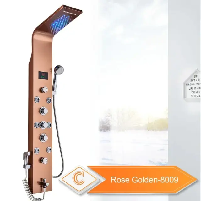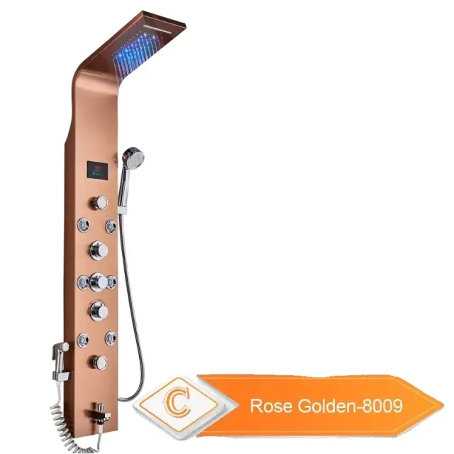 Tuš panel, LED luči, dvojna kontrola temperature, 8009 rožnato zlato
