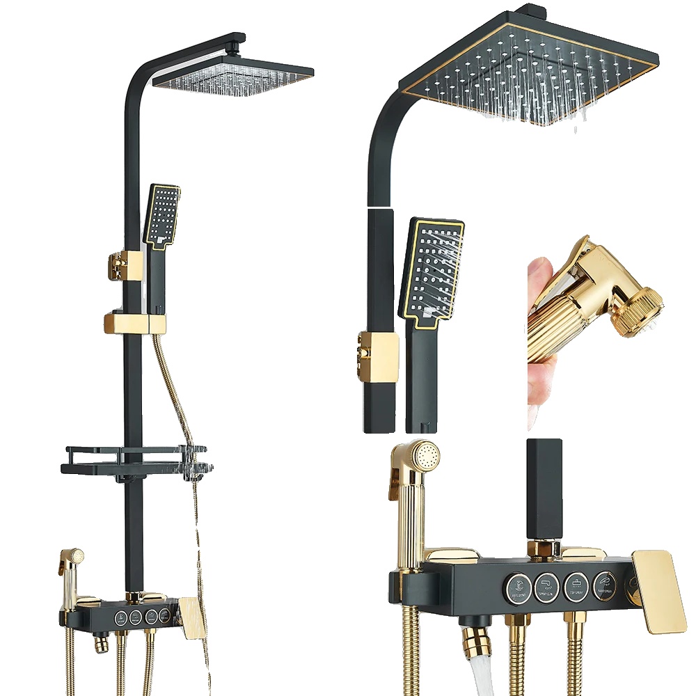 Tuš pipa, nadzor s pritiskom na gumb, sodoben dizajn, črna zlata