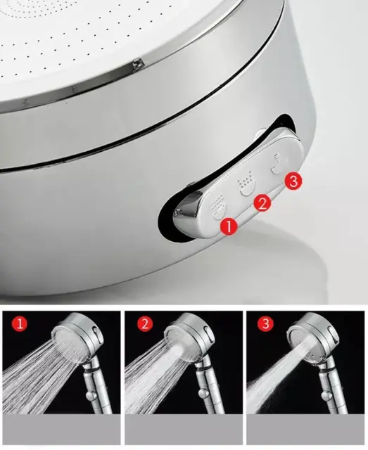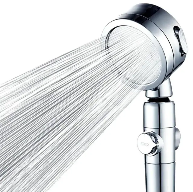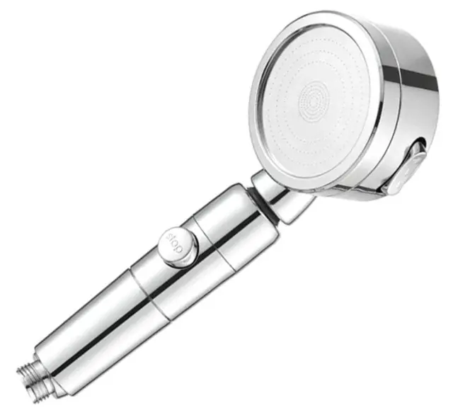 Kromirana tuš glava. Zasnovan za vgradnjo v standardno tuš cev. Slušalka ima klasično tuš funkcijo in STOP funkcijo, ki ustavi tok. Vgrajeni ventilator poveča moč pršenja brez povečane porabe vode.