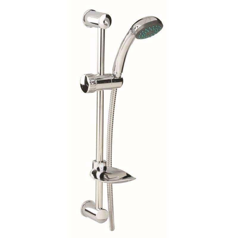 Enofunkcijska glava tuša Kovinska palica z drsnim držalom Dvojno zaklenjena tuš cev s stožčasto matico 1500 mm, posoda za milo iz pletenega jekla Barva: krom