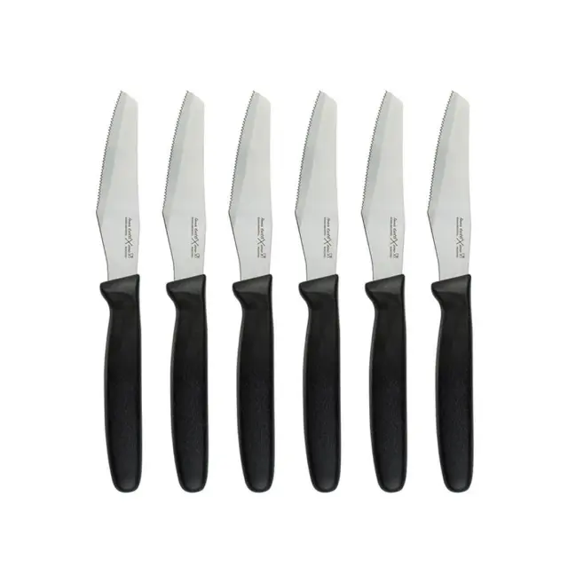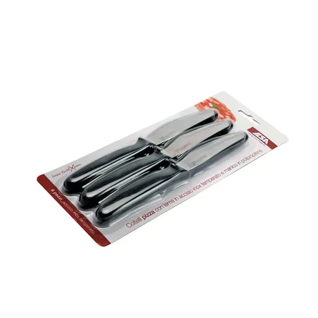 Set šestih nožev za rezanje pice tuttiXuno je popolna izbira za vse ljubitelje pizze – tako doma kot v gostinstvu. Vsak nož je opremljen z ostrim, nazobčanim rezilom iz kaljenega nerjavečega jekla dolžine 10 cm, ki zagotavlja gladko in natančno rezanje tudi skozi debelejše skorje in bogate nadeve.