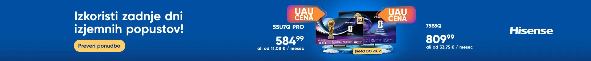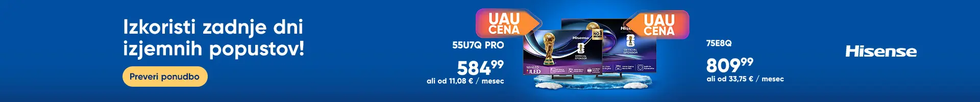 Ste pripravljeni na vrhunsko izkušnjo gledanja televizije? V naši bogati ponudbi boste našli raznovrstne LED, OLED, QLED, MiniLED in Lifestyle televizorje, ki združujejo napredno tehnologijo, eleganten dizajn in številne uporabne funkcije, primerne za vsak dom.
