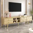 TV omarica 160 cm z zlatimi nogami in edinstveno oblikovanimi vrati.