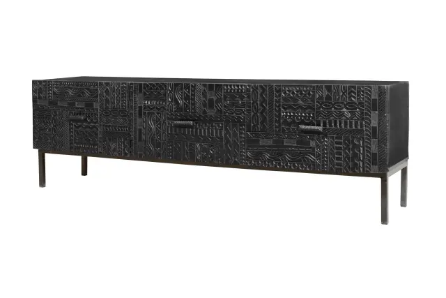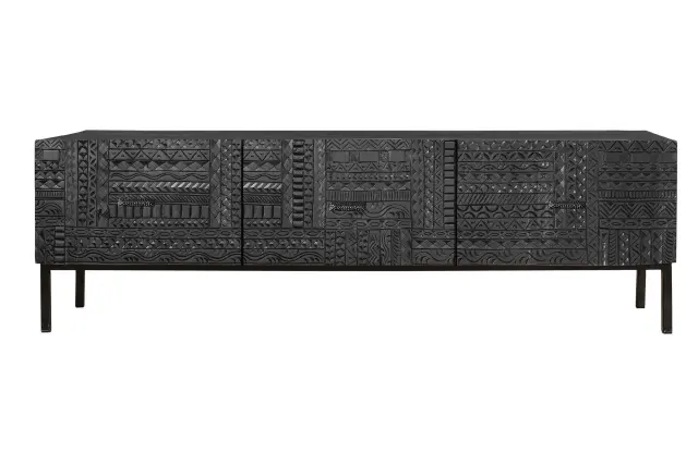 TV omarica iz mangovega lesa in kovinskih nog iz temnega oreha