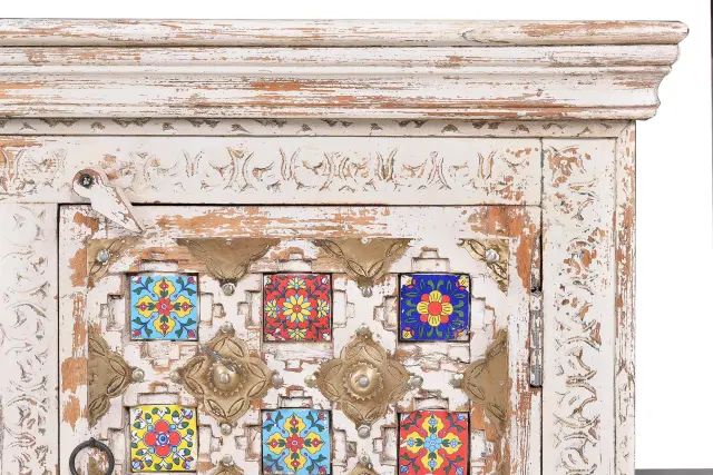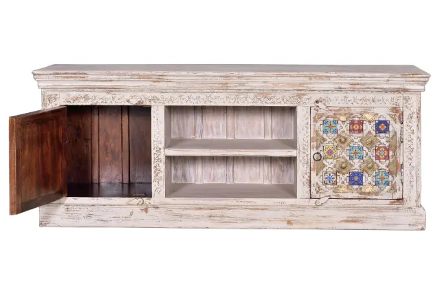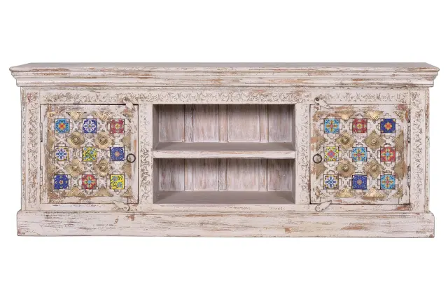 TV omarica iz mangovega lesa s keramičnimi in bronastimi detajli