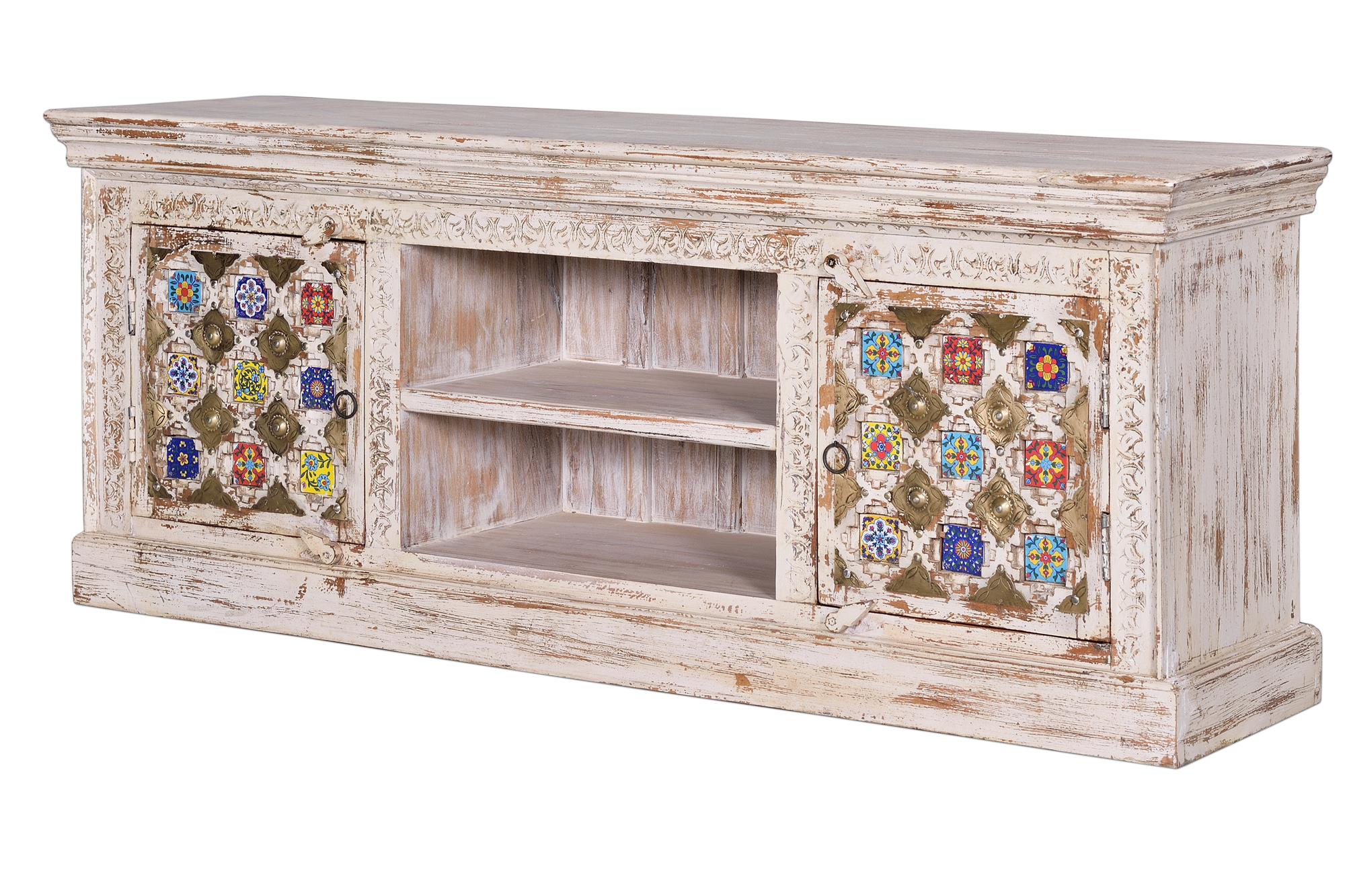 TV omarica iz mangovega lesa s keramičnimi in bronastimi detajli