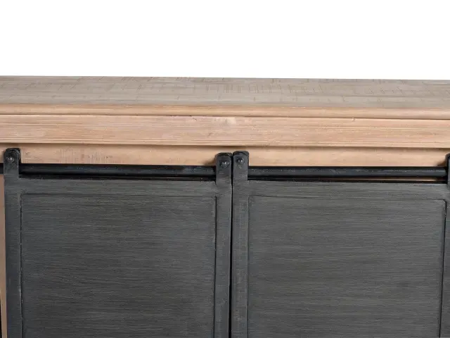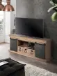TV omarica iz mangovega lesa z naravnimi in sivimi kovinskimi nogami