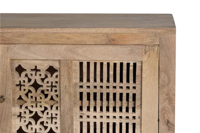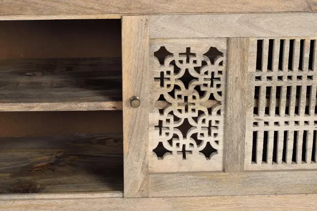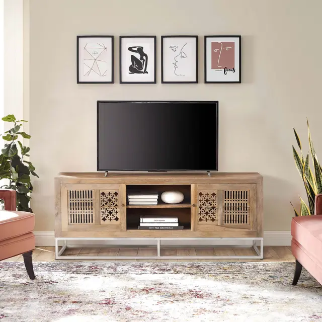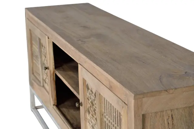 TV omarica iz mangovega lesa in kovinskih nog v naravni barvi