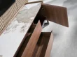TV omarica iz oreha in temnega kovinskega jekla s porcelanasto marmorno plošco