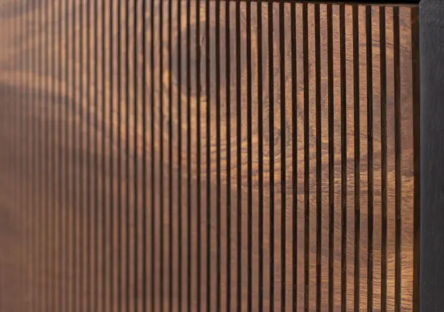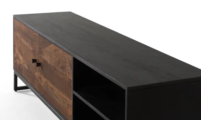 TV omarica iz palisandra z rjavimi kovinskimi nogami