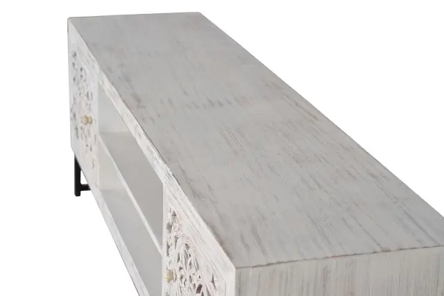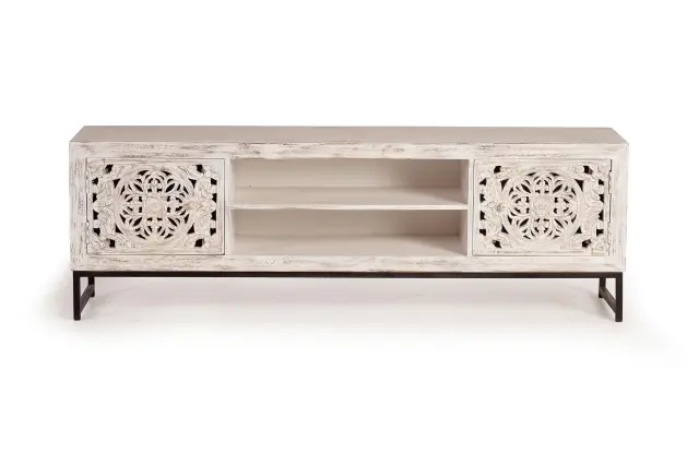 TV omarica iz rezljanega mangovega lesa in kovine