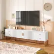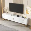 TV omarica, nizka plošča s teksturiranimi vrati, TV omarica s predali, zlati ročaji in zlate noge