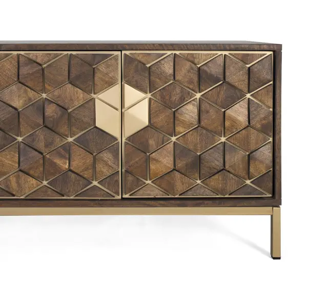 TV omarica s 4 vrati iz mangovega lesa in kovinskim podnožjem