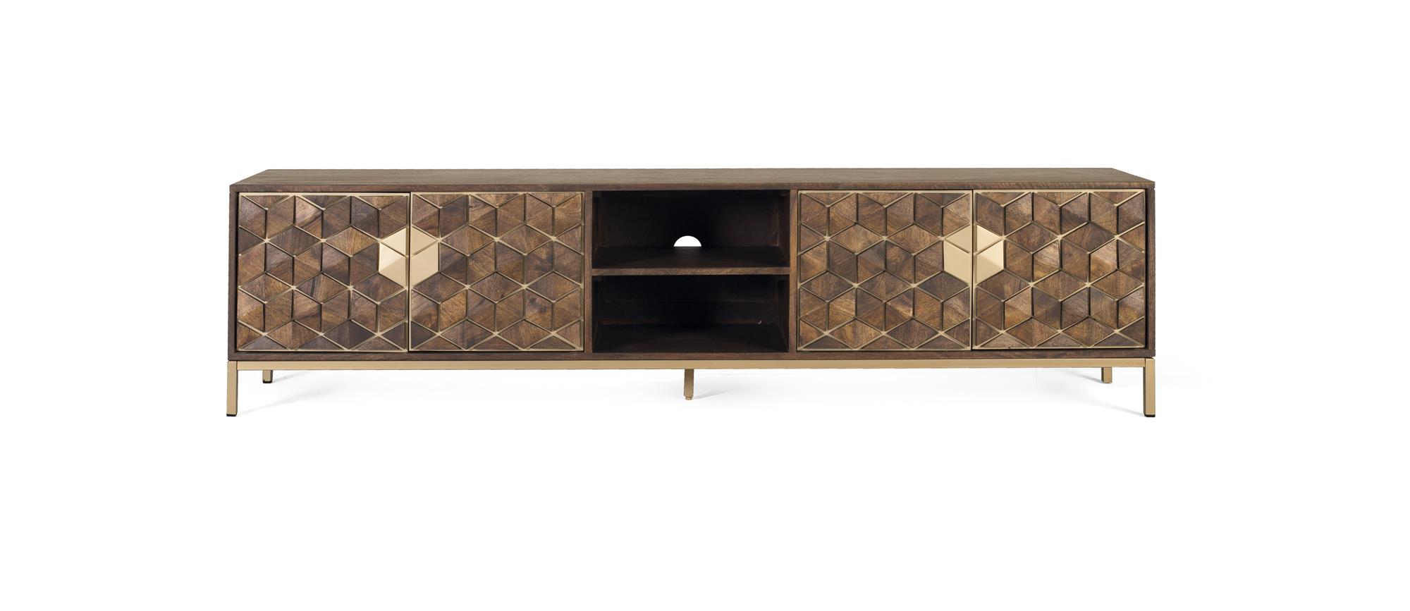 TV omarica s 4 vrati iz mangovega lesa in kovinskim podnožjem
