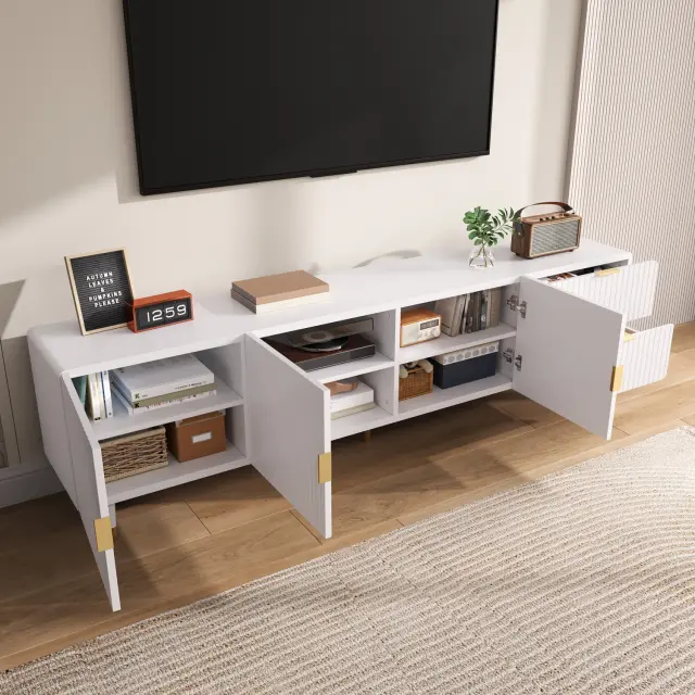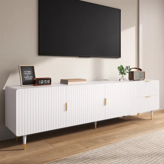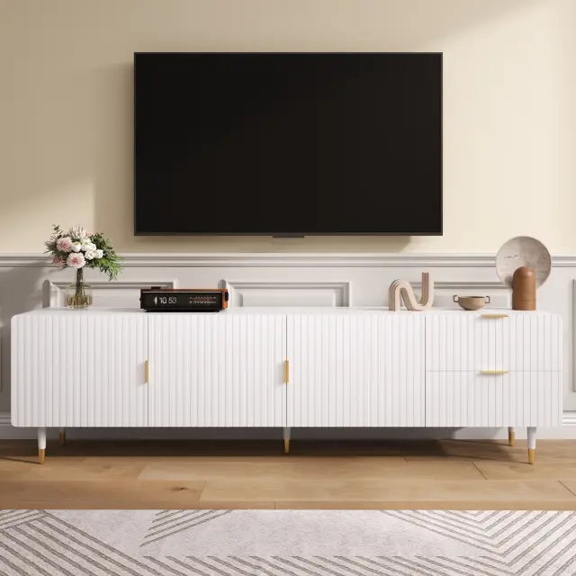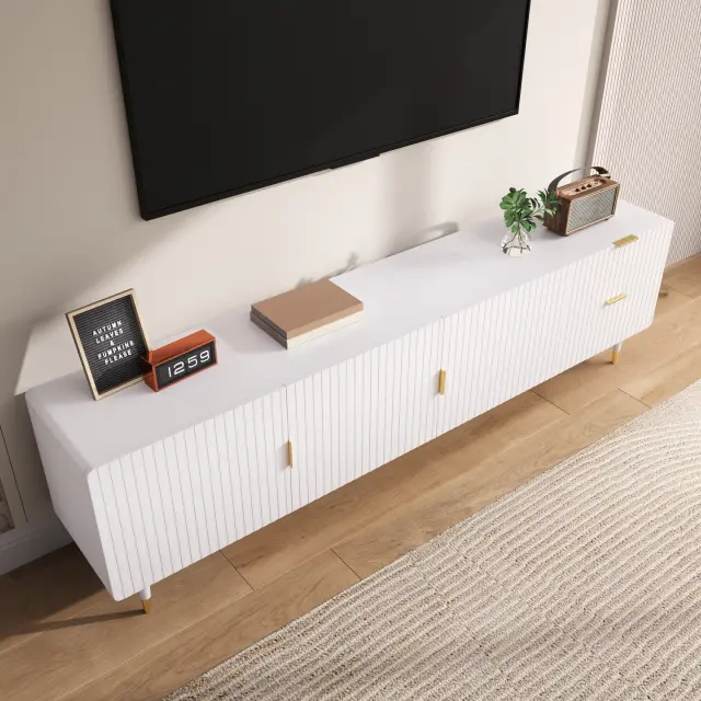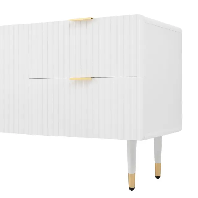 TV omarica s predali, zlatimi ročaji in nogami, nastavljivimi nogicami.