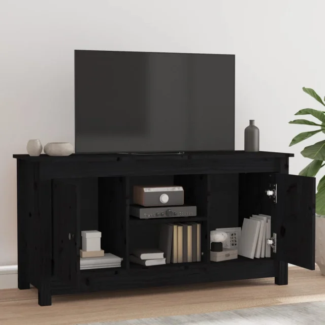 TV omarica - TV enota - Televizijska omarica črna 103x36,5x52 cm trdna borovina