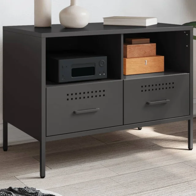Ta trpežna TV omarica v industrijskem slogu je brezčasen dodatek za vašo dnevno sobo ali spalnico.
