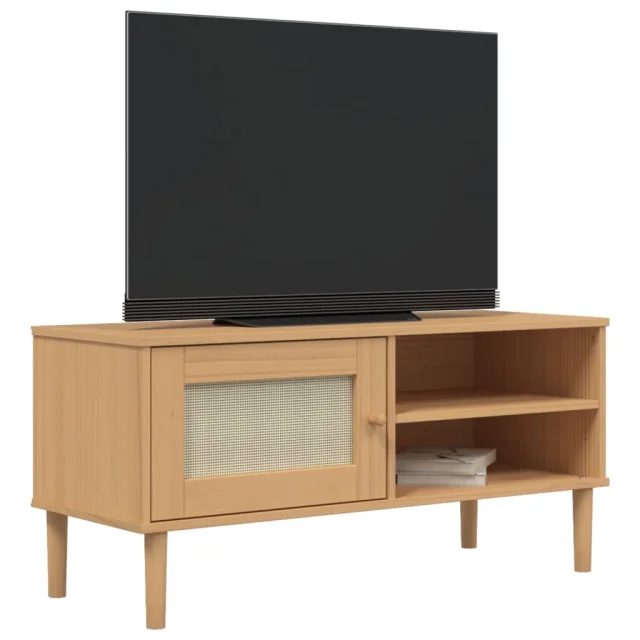 TV omarica - TV enota - Televizijska omarica SENJA videz ratana rjava 106x40x49 cm trdna borovina