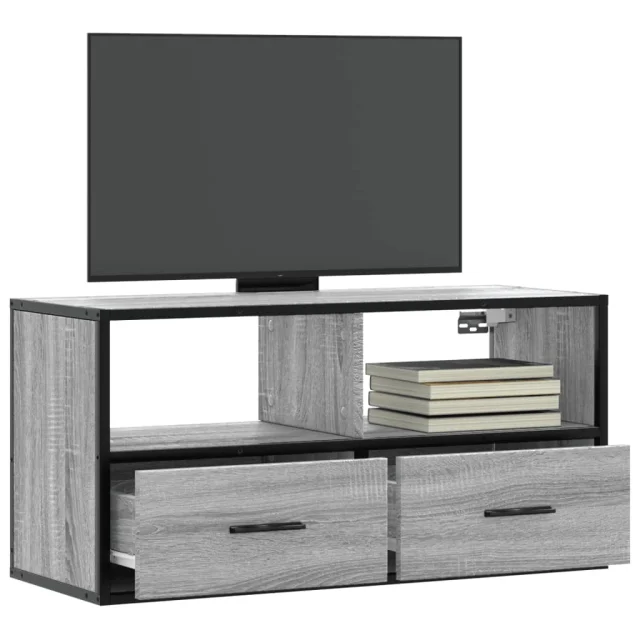 TV omarica - TV enota - Televizijska omarica siva sonoma 80x31x39,5 cm inženirski les in kovina