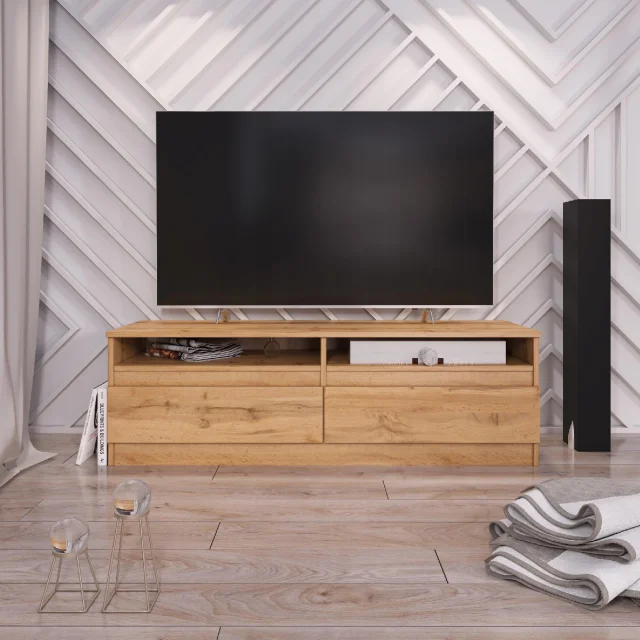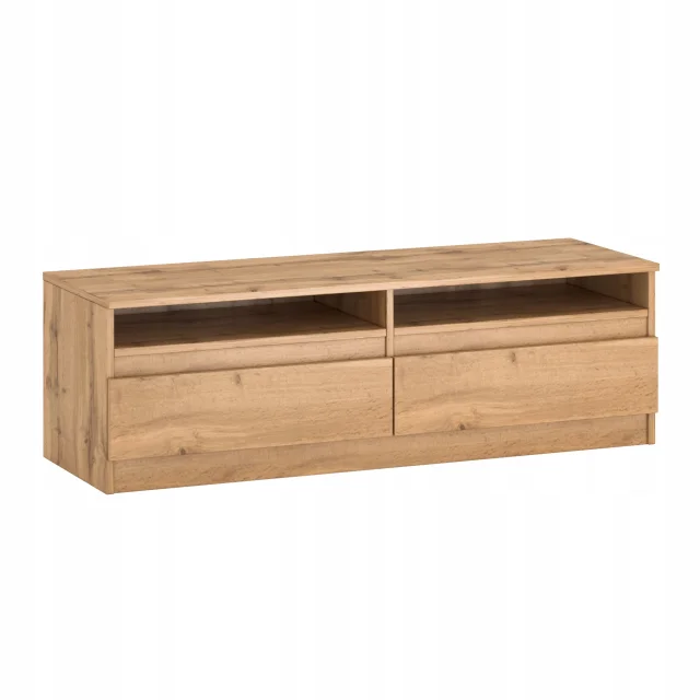 Stojalo za TV je idealna izbira za minimalistično, moderno notranjost. Zaradi preprostega, funkcionalnega videza je popoln za razstavne namene. Poleg RTV opreme lahko nanj postavite okrasne dodatke, fotografije svojih najdražjih ali rože. Z uporabo ivernih plošč namesto samo masivnega lesa v tem izdelku je za izdelavo vsakega izdelka potrebno manj lesa. Tako bolje skrbimo za okolje.