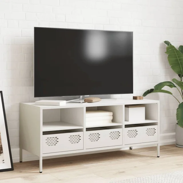 TV omarica - TV stojalo - Televizijska omarica bela 101,5x39x43,5 cm hladno valjano jeklo