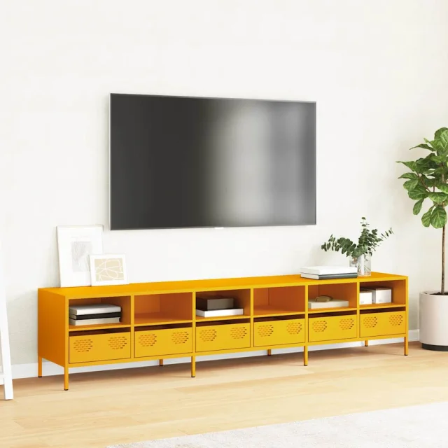 TV omarica - TV stojalo - Televizijska omarica gorčično rumena 202x39x43,5 cm hladno valjano jeklo