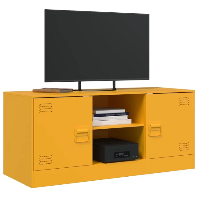TV omarica - TV stojalo - Televizijska omarica gorčično rumena 99x39x44 cm jeklo