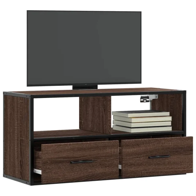 TV omarica - TV stojalo - Televizijska omarica rjavi hrast 80x31x39,5 cm inženirski les in kovina