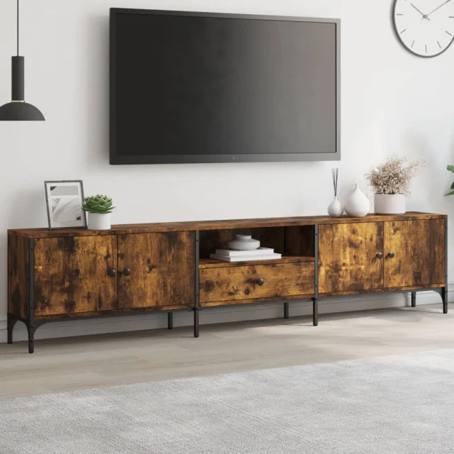 TV omarica - TV stojalo - Televizijska omarica s predalom dimljeni hrast 200x25x44 cm inž. les