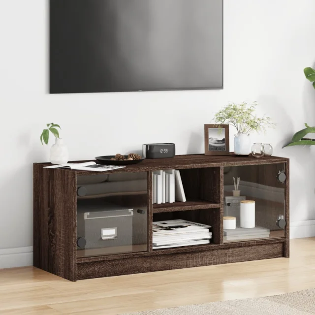 TV omarica - TV stojalo - Televizijska omarica s steklenimi vrati rjavi hrast 102x37x42 cm