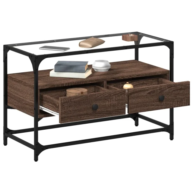 TV omarica - TV stojalo - Televizijska omarica s stekleno ploščo rjavi hrast 80x35x51 cm inž. les