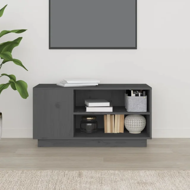TV omarica - TV stojalo - Televizijska omarica siva 80x35x40,5 cm trdna borovina