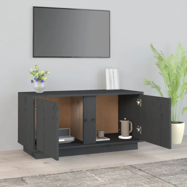 TV omarica - TV stojalo - Televizijska omarica siva 80x35x40,5 cm trdna borovina
