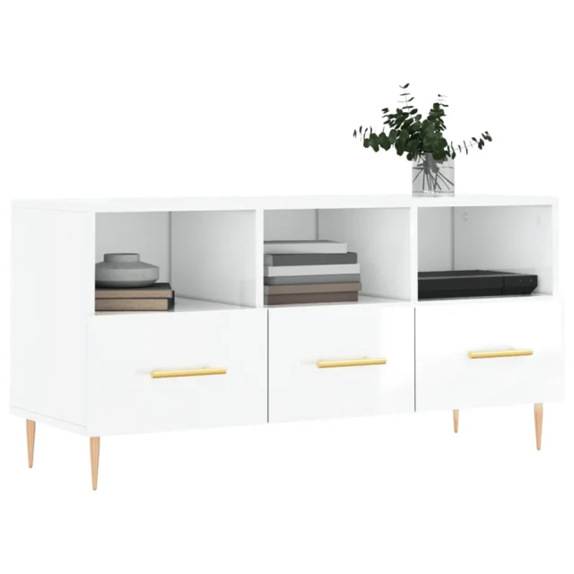 TV omarica - TV stojalo - Televizijska omarica visok sijaj bela 102x36x50 cm inženirski les