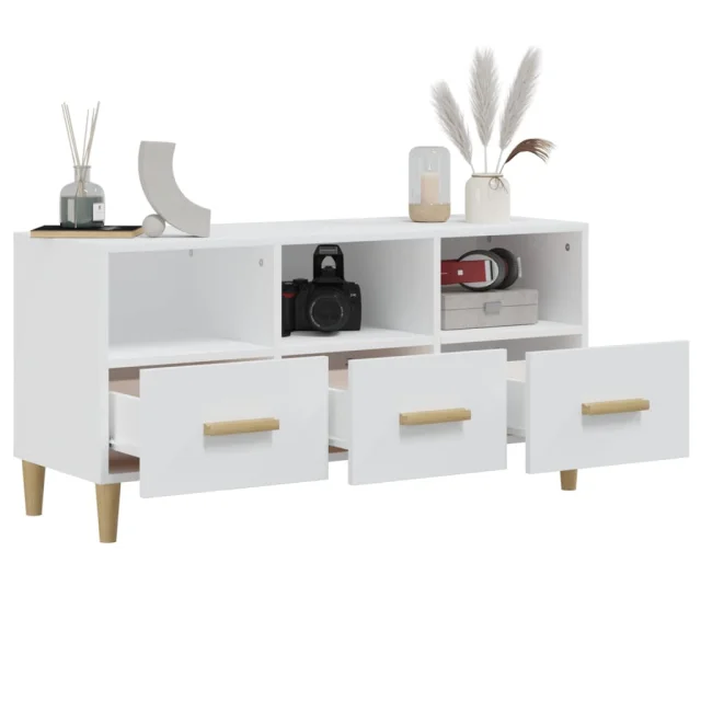TV omarica - TV stojalo - Televizijska omarica visok sijaj bela 102x36x50 cm inženirski les