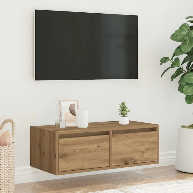 TV omarica - TV stojalo - Televizijska omarica z LED lučkami artisan hrast 75x35,5x25 cm