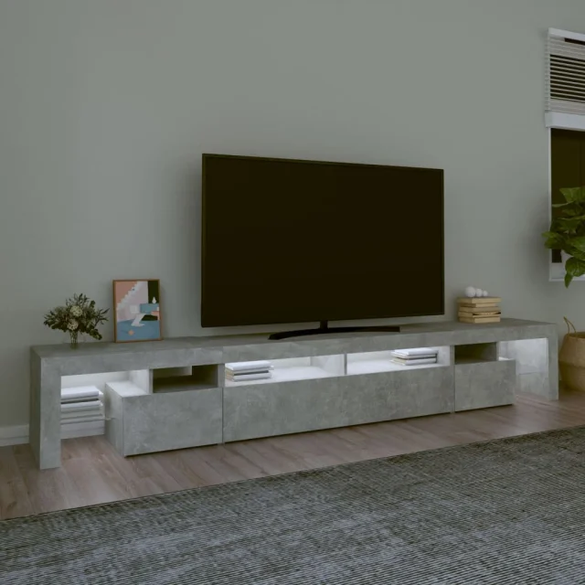 TV omarica - TV stojalo - Televizijska omarica z LED lučkami betonsko siva 260x36,5x40 cm