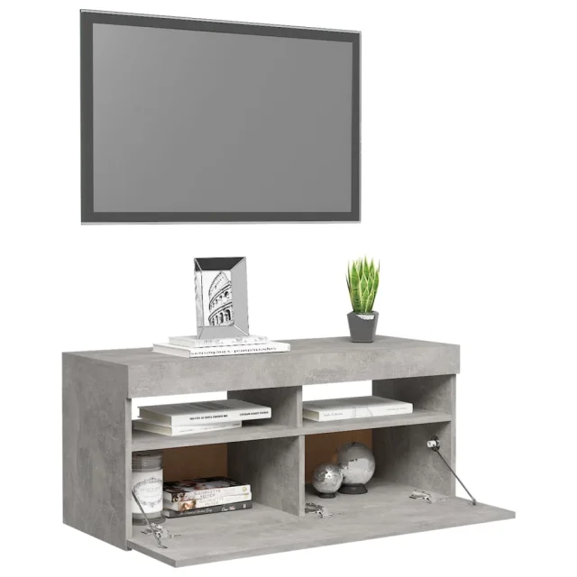 TV omarica - TV stojalo - Televizijska omarica z LED lučkami betonsko siva 90x35x40 cm