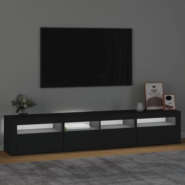 TV omarica - TV stojalo - Televizijska omarica z LED lučkami črna 210x35x40 cm